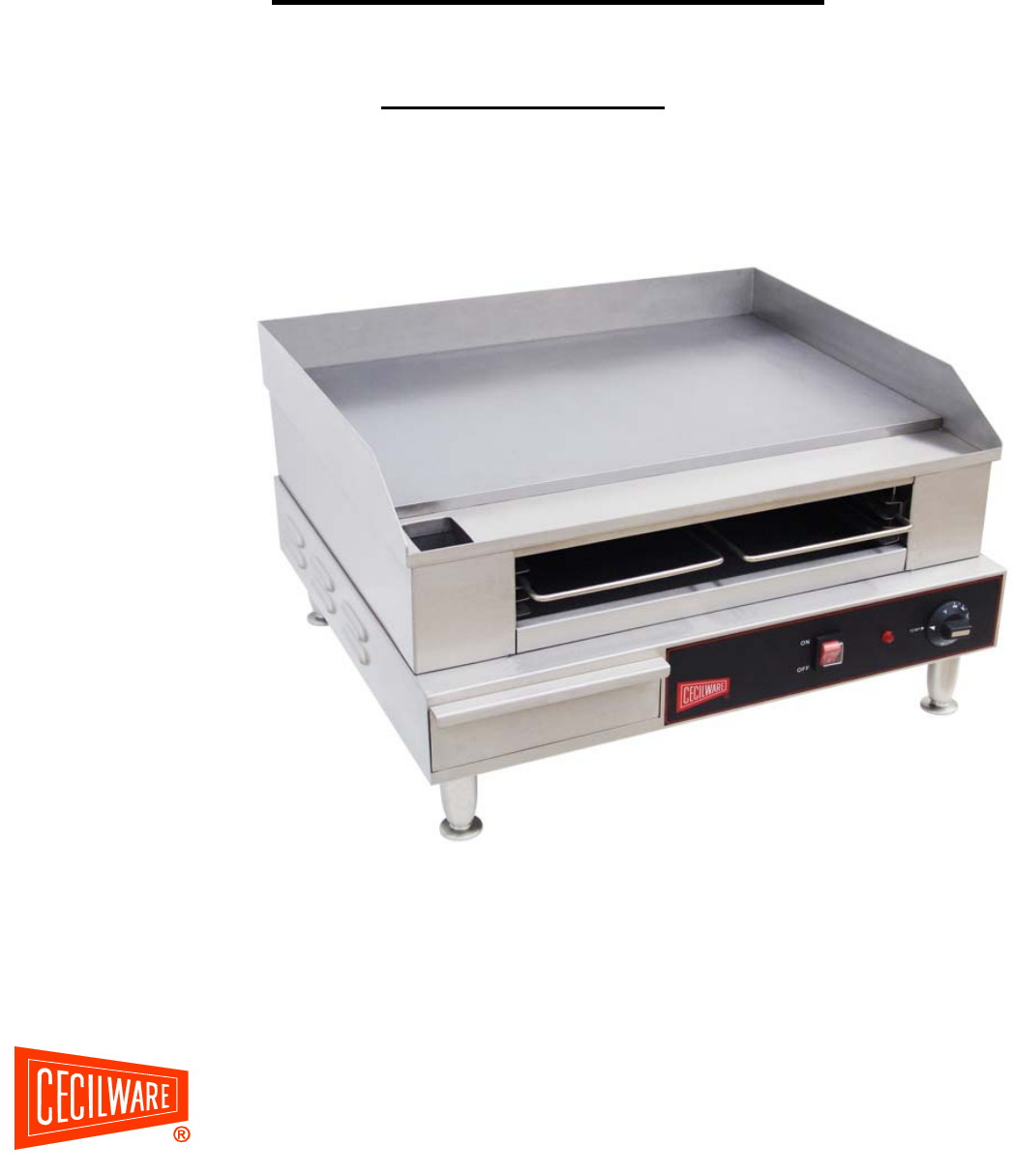 2Introduction Congratulations on the purchase of your Cecilware Griddle/Cheesemelter. Please take a few moments to carefully read through this manua